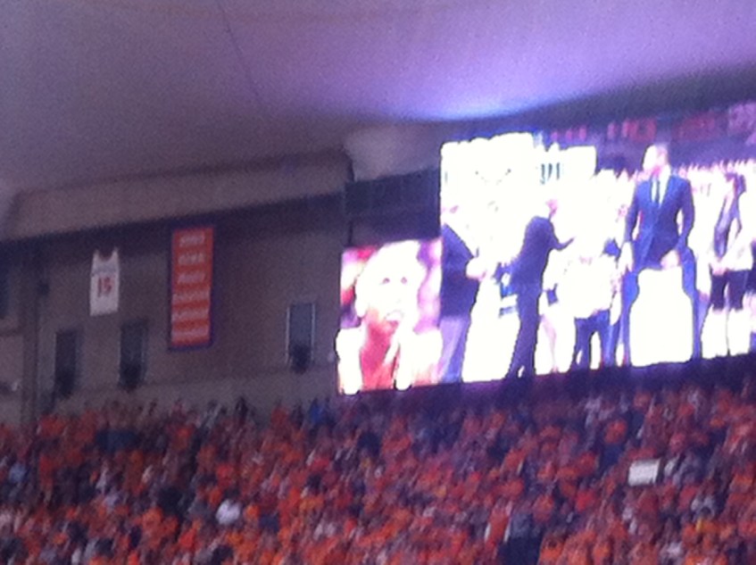 CuseGame1 Published February 27, 2013 at 1296 × 968 in Home Sweet Dome Carmelo’s jersey up next to the ’03 Championship banner