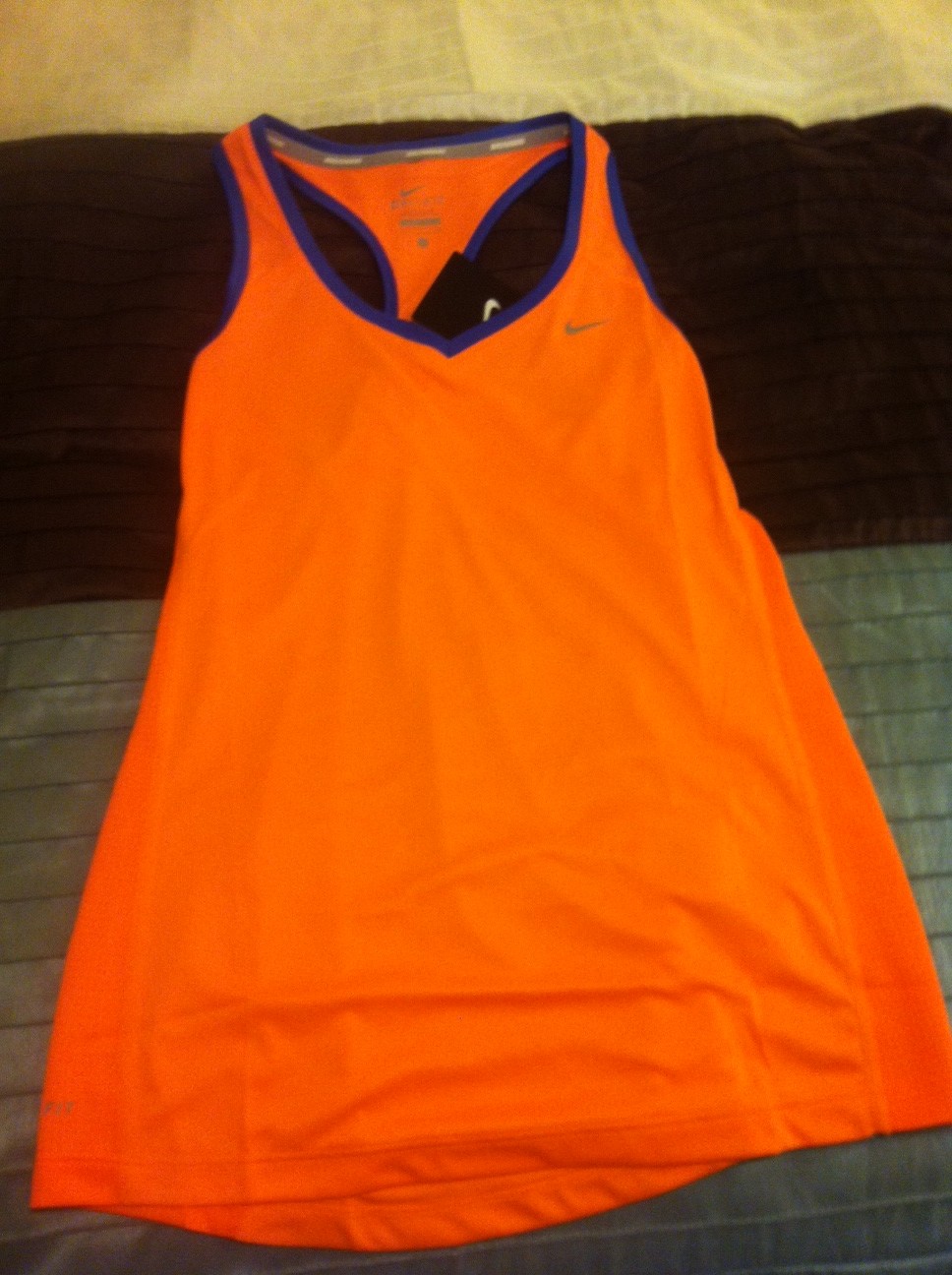 To enter the raffles you had to buy something Nike from the store. I wish they’d let everyone get at least one ticket for free and then gave more entries to people who purchased items, but that was really my only complaint of the night. I managed to find a few things I really wanted anyways and since I just passed the $50 mark, I got a free pair of Nike performance socks to go along with them! I picked up a great new Nike running hat. Let’s just say it was time – my white running hat I’ve been wearing since training started for my 2011 Twin Cities and Marine Corps Marathon races is getting a bit worn. I also got a new orange top that is identical to ones I already have in green and white. They are oh so comfortable and I love wearing them on the run or to the gym or spin class. I figured I’d go with Orange in honor of Syracuse taking on Indiana in the Sweet 16 later that night!