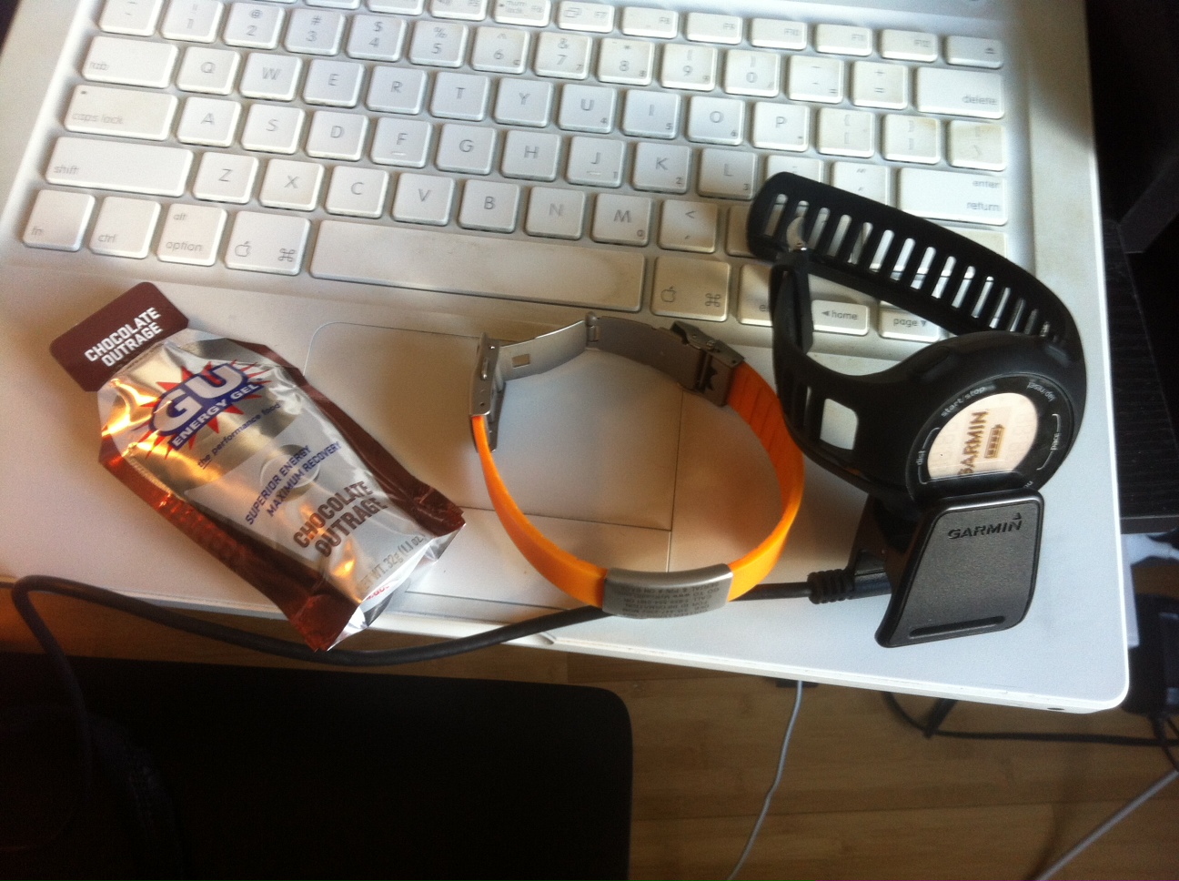 I also charge my Garmin even if I’ve recently charged it because I might actually panic if it died on me during a race. I make sure I have my Road ID ready and my Gu or other fuels I plan to take during the race too.