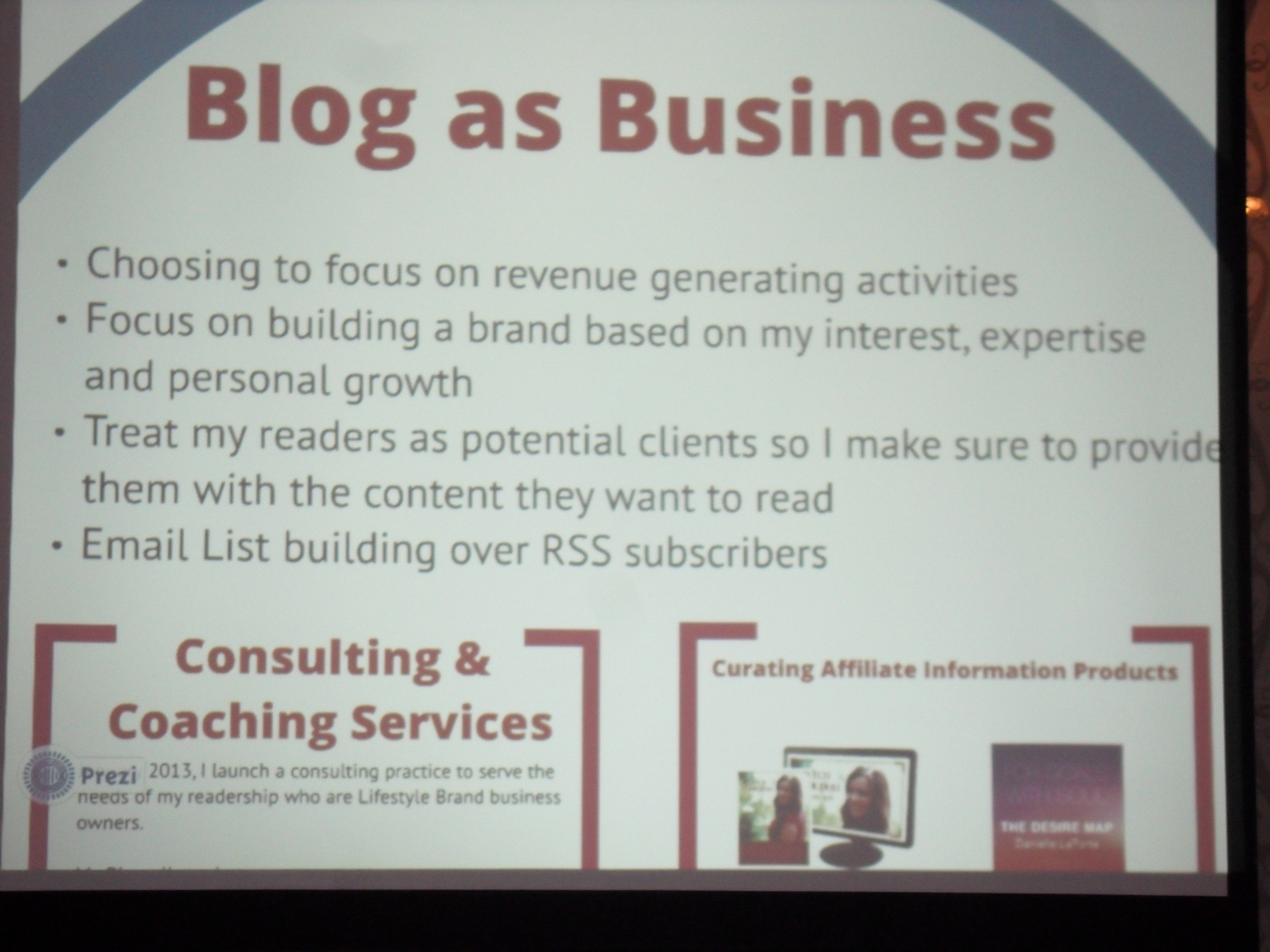 I really enjoyed the session on Photography for Blogging: Tech, Art, and Heart. Amanda Duran of Grow Soul Beautiful talked about the tech side of things like choosing the right aperture, shutter speed and ISO to take the best picture possible as well as what kind of camera is right for you and how to choose lenses for more advanced cameras. She gave some great tips on lighting, creative apps and backing your photos up, but my favorite piece of advice she gave was the best camera you can have is the one you’ll use. She also encouraged everyone to do something with their photos. I’ve always been a big proponent of actually using all of the digital photos I take rather than letting them rot on a memory card whether it’s printing them out, making a photobook, getting a digital photo frame or something else.