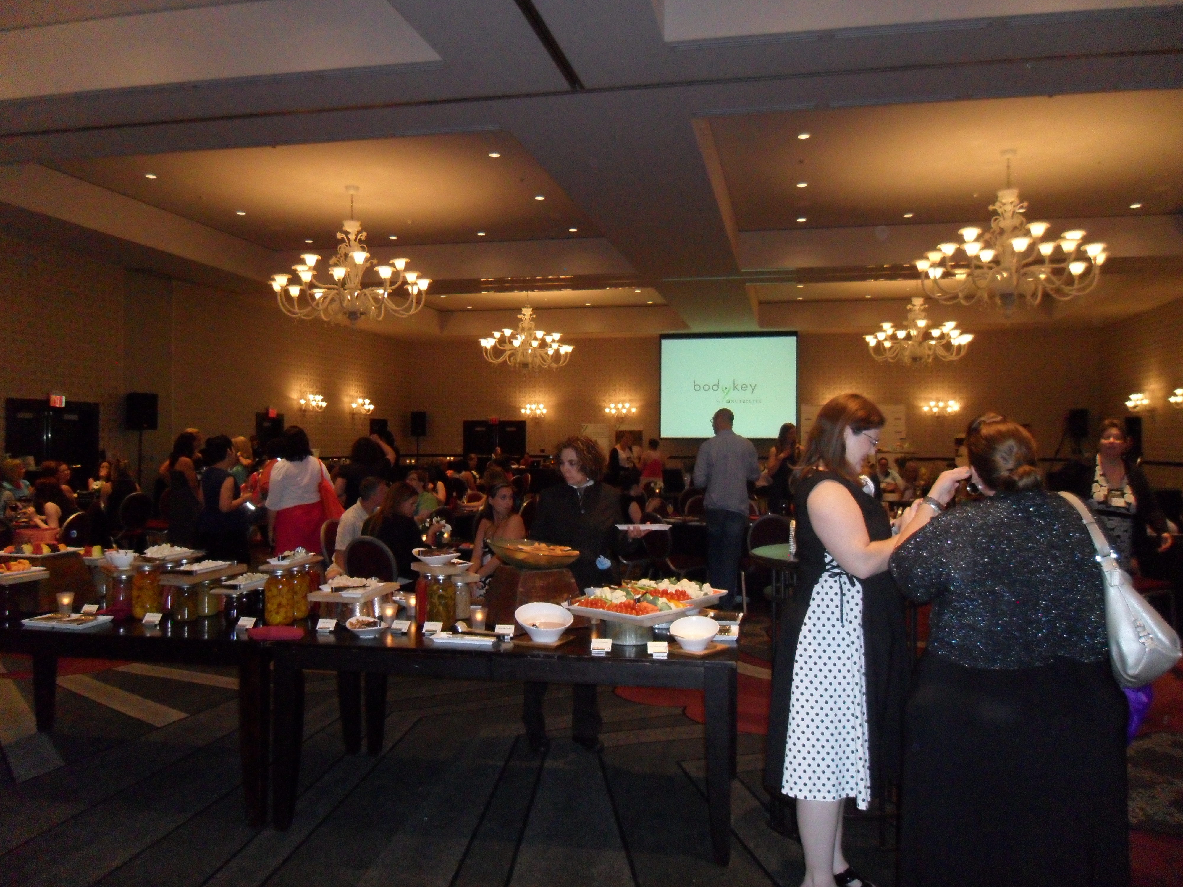 While I was really excited to go to FitBloggin, I was also super nervous. I didn’t know anyone there and I hate usually HATE networking receptions. After five minutes at the Opening Welcome Mixer, all my nerves had disappeared – this was an awesome, open and welcoming group. I started out introducing myself to others at the badge decorating table while I blinged out my badge with some stickers…yes, that’s the extent of my art talent. Next I wandered around to several tables meeting more cool bloggers while trying to complete a bit of a scavenger hunt. Then came the ice breaker games that I used to dread. I have to say, theirs were pretty cool though. The evening culminated in a dance off party that had me laughing and feeling completely comfortable with this huge group of bloggers. Kudos to the organizers on this!
