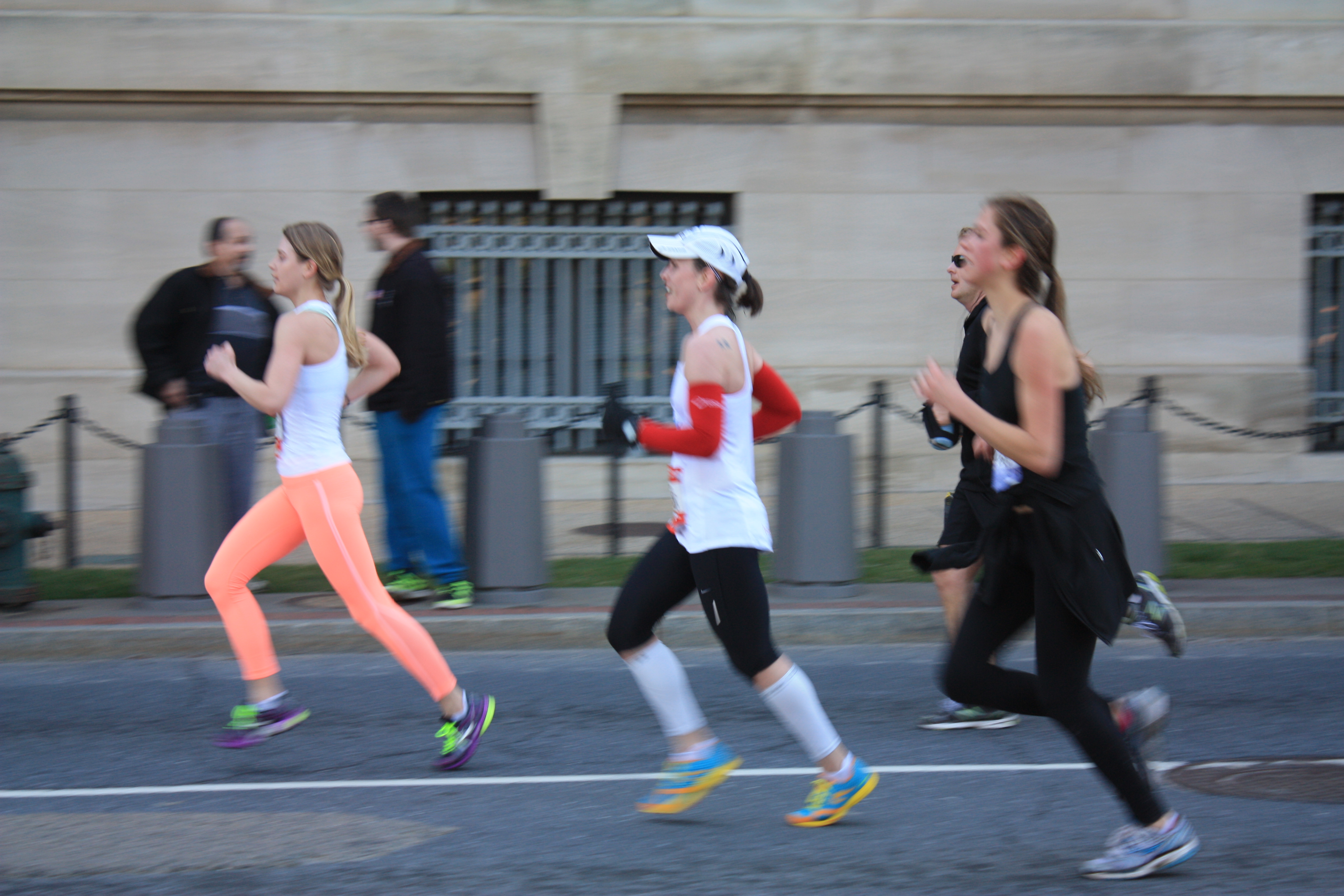 I was up at 5:15 Sunday, had a quick breakfast and headed out the door to drive to Rosslyn where I could metro in to the starting line. With 50-degree temps and no wind on tap I wore my Oiselle rogas, singlet and arm warmers.