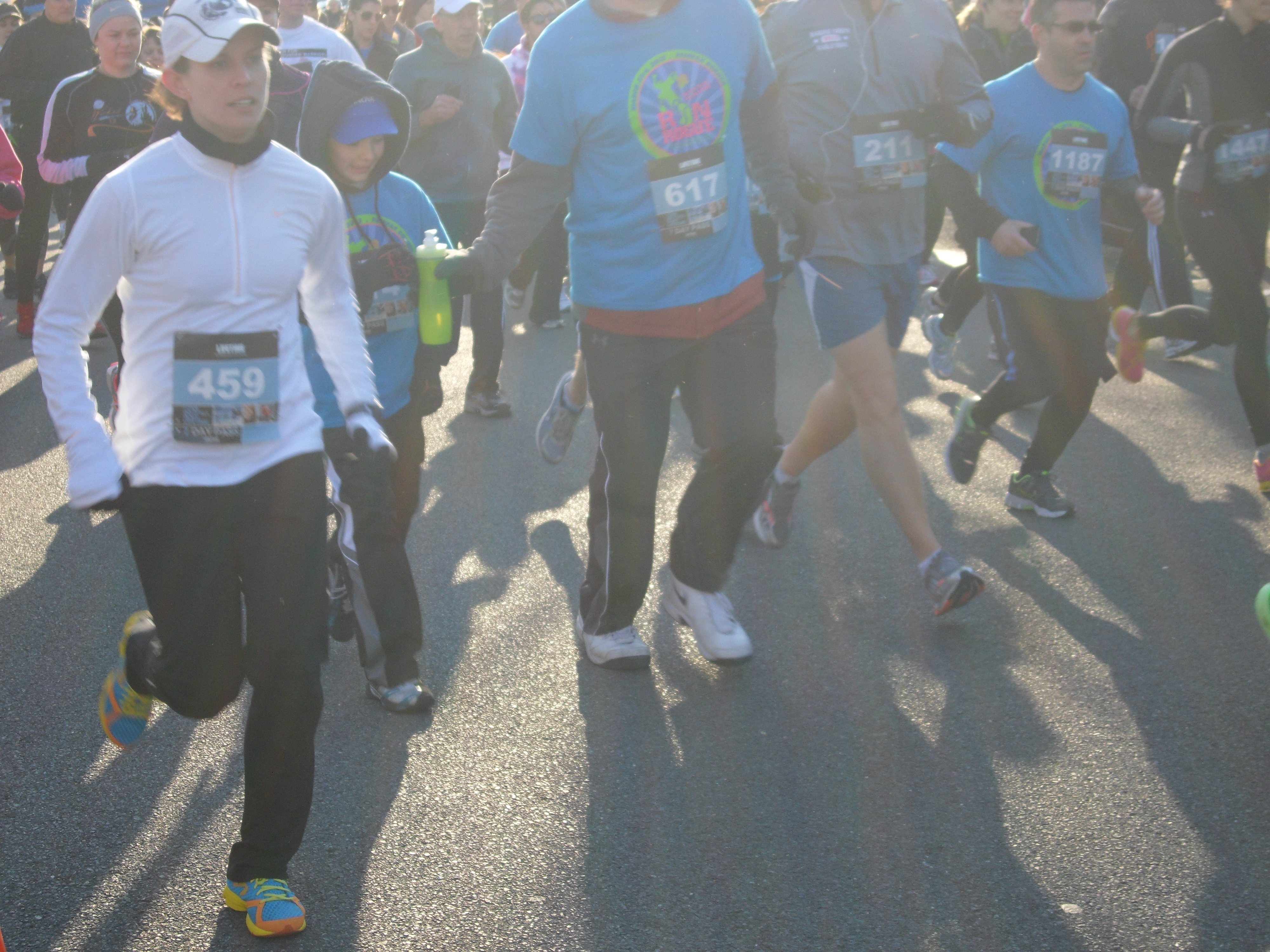 I was expecting the race to be completely flat, but boy was there a tough hill between miles seven and eight or so. It really took the wind out of my sails for awhile and definitely impacted my overall pace – note to self: add more hill training in to workouts!