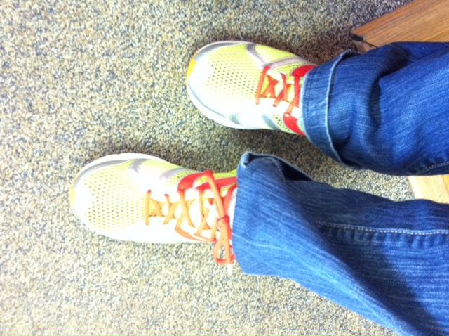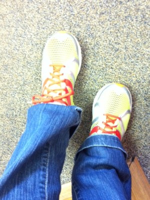 I had to leave my apartment a little after 6 to get to the start of packet pick-up on time, so without a car and the metro closed, my only option was to bike over. It was still a bit dark when I took off, so I was very thankful my Dad helped me install blinking lights on the front and back of my bike when he was in town a couple weeks ago. I also sported a Nathan blinking reflective vest just for good measure. I’m pretty sure anyone could see me from a mile away!