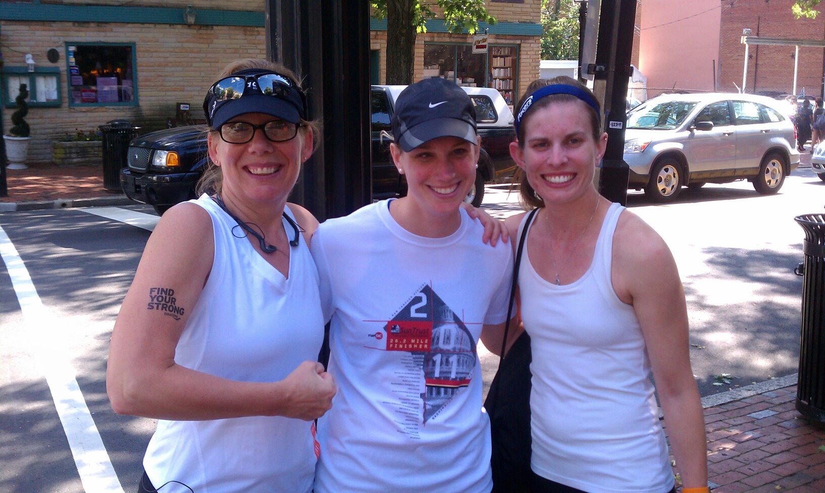 It was one of those days I really wish I’d brought my nice camera along. Riding into D.C. looking at the red sky over the monuments as the sun just started to rise on a foggy morning was absolutely beautiful and my iPhone just couldn’t do it justice. Also, as you can see in the finish line pic, my shutter speed on the iPhone couldn’t quite keep up with the lead runner so all I caught was the finish line banner falling to the ground.